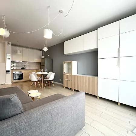 This apartment lies in the Srodmiescie district, 20 minutes on foot from the Gothic Old Town- Historic Center.